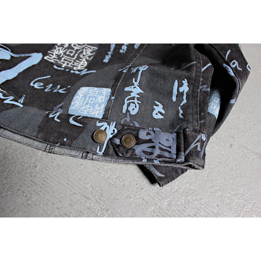 90's Bianca Nygård kanji design black denim jkt